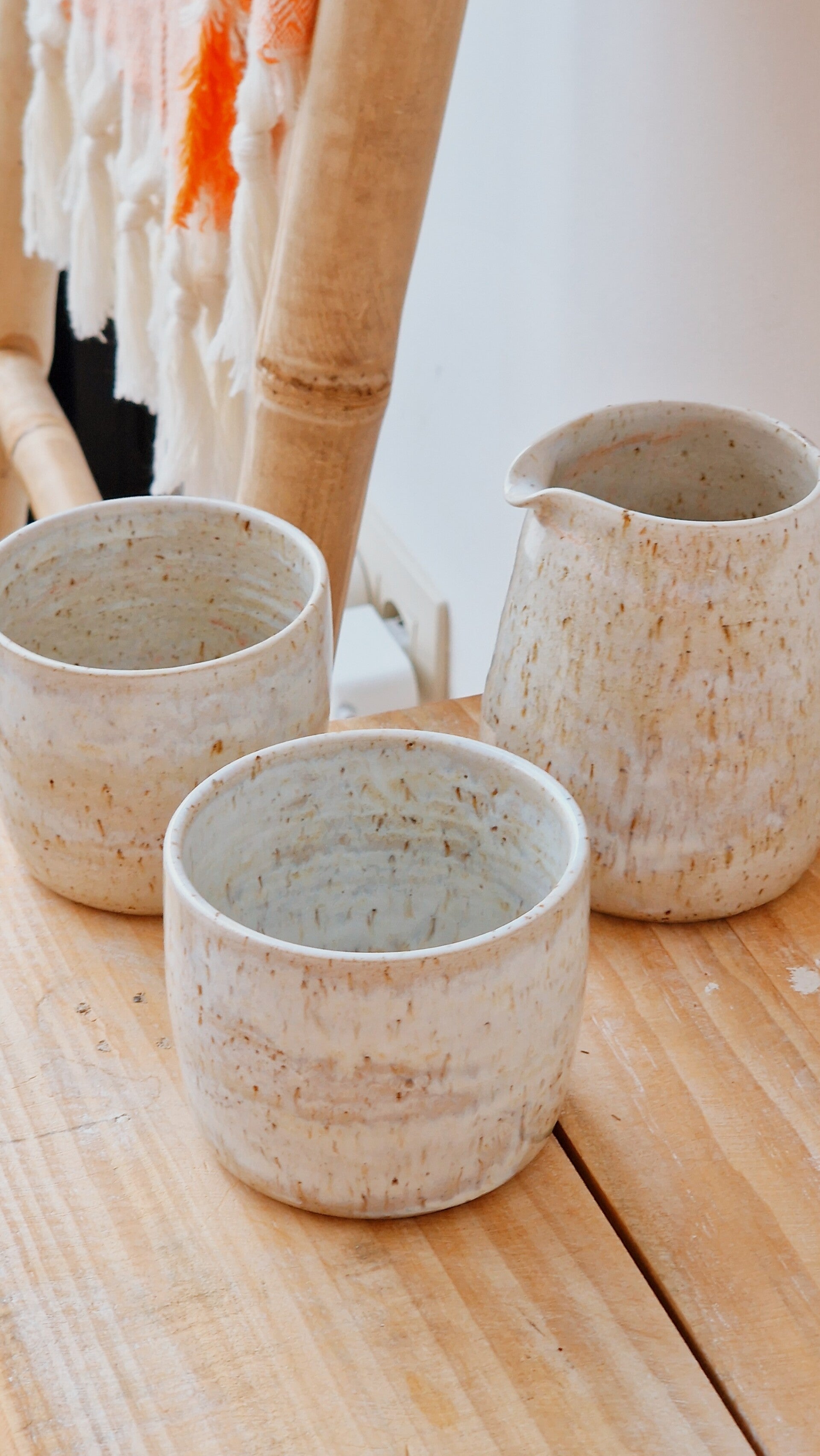 Melkkannetje , kan ook dienen als sausschenker . H 11 cm diam bovenaan 6 cm .